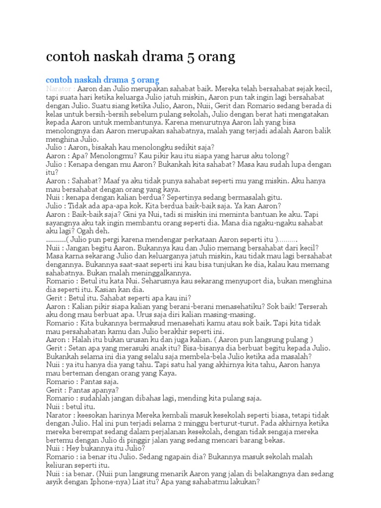 DOC) Contoh naskah drama persahabatan 5 orang | narenda wahyu - Academia.edu