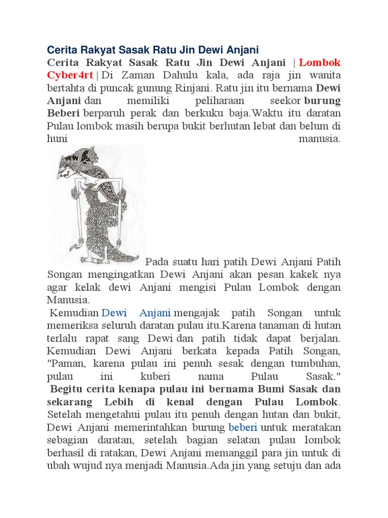 Cerita Rakyat Sasak Ratu Jin Dewi Anjani