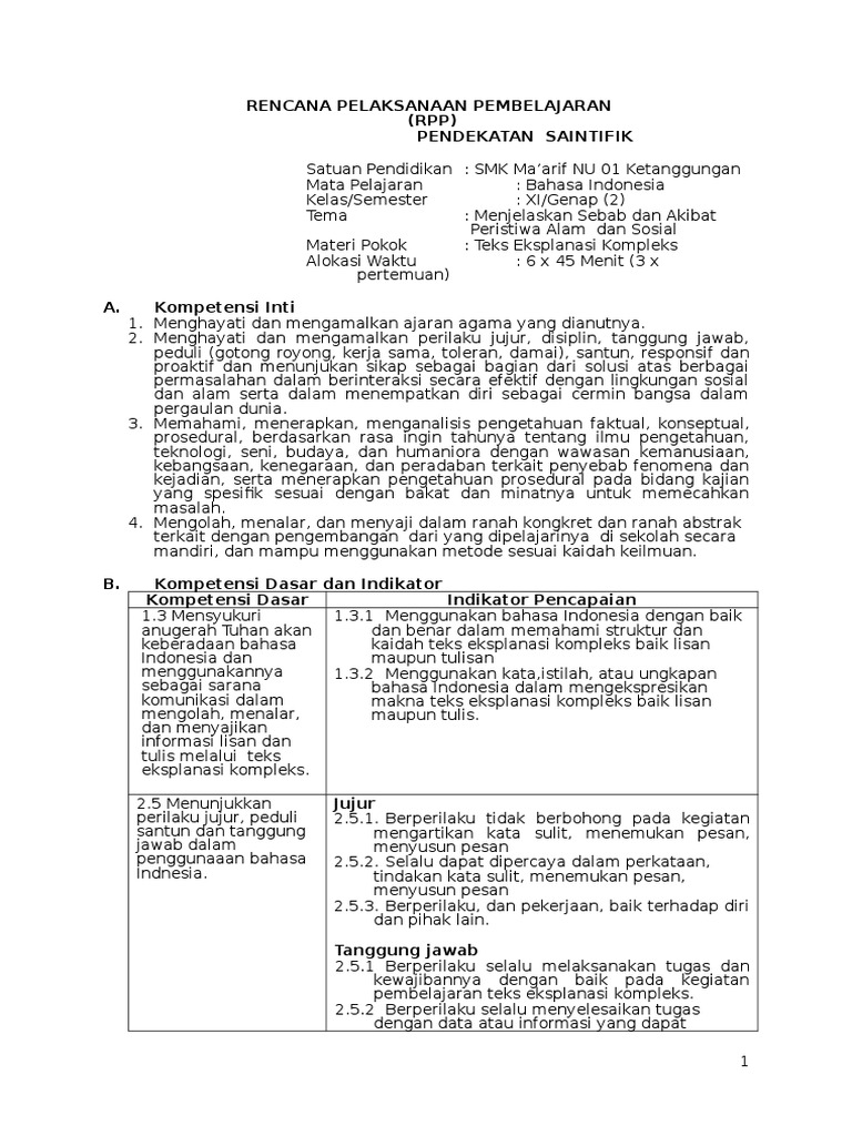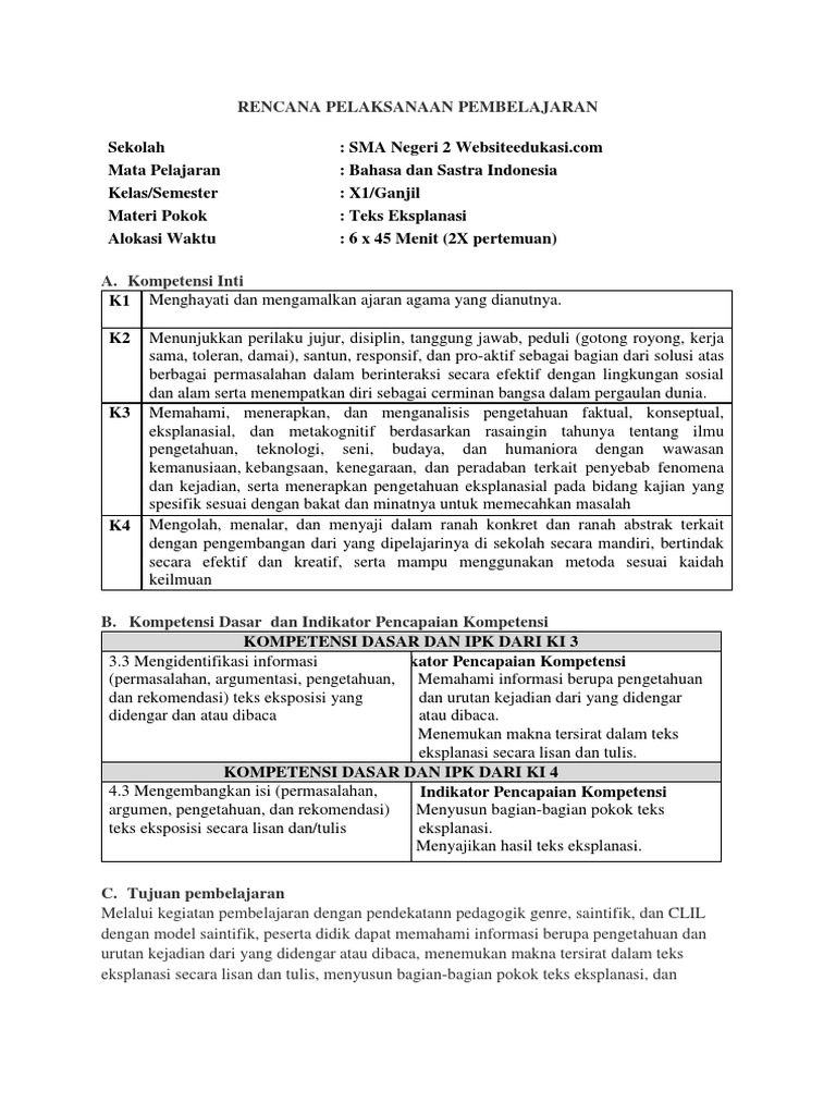 PDF) RENCANA PELAKSANAAN PEMBELAJARAN (RPP) TEKS EKSPLANASI DAN LAMPIRAN | Iga Noor Khayati - Academia.edu