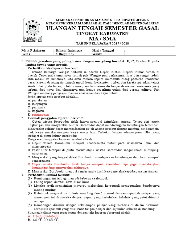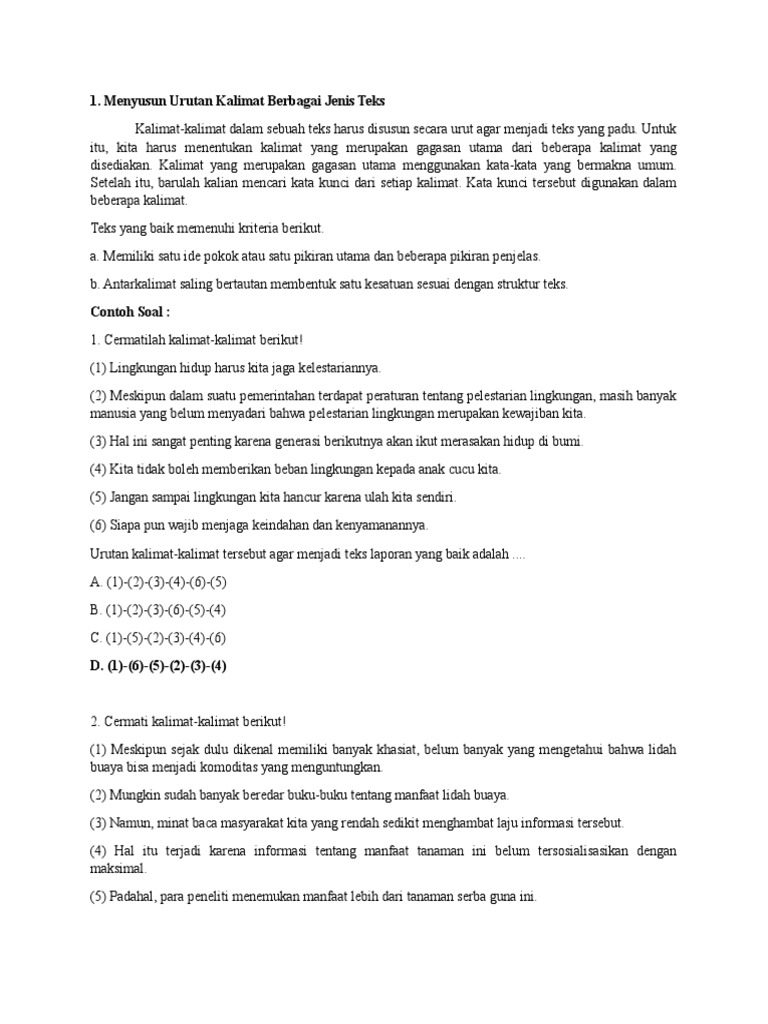 SOAL DAN PEMBAHASAN MENGURUTKAN KALIMAT ACAK TEKS LAPORAN ~ ZUHRI INDONESIA