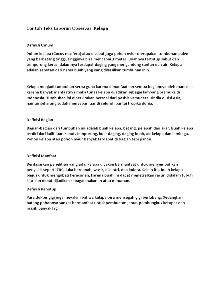 Contoh Teks Laporan Observasi Kelapa