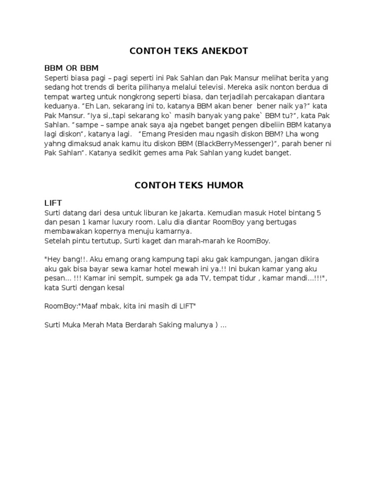 persamaan teks anekdot dan cerita humor - Brainly.co.id