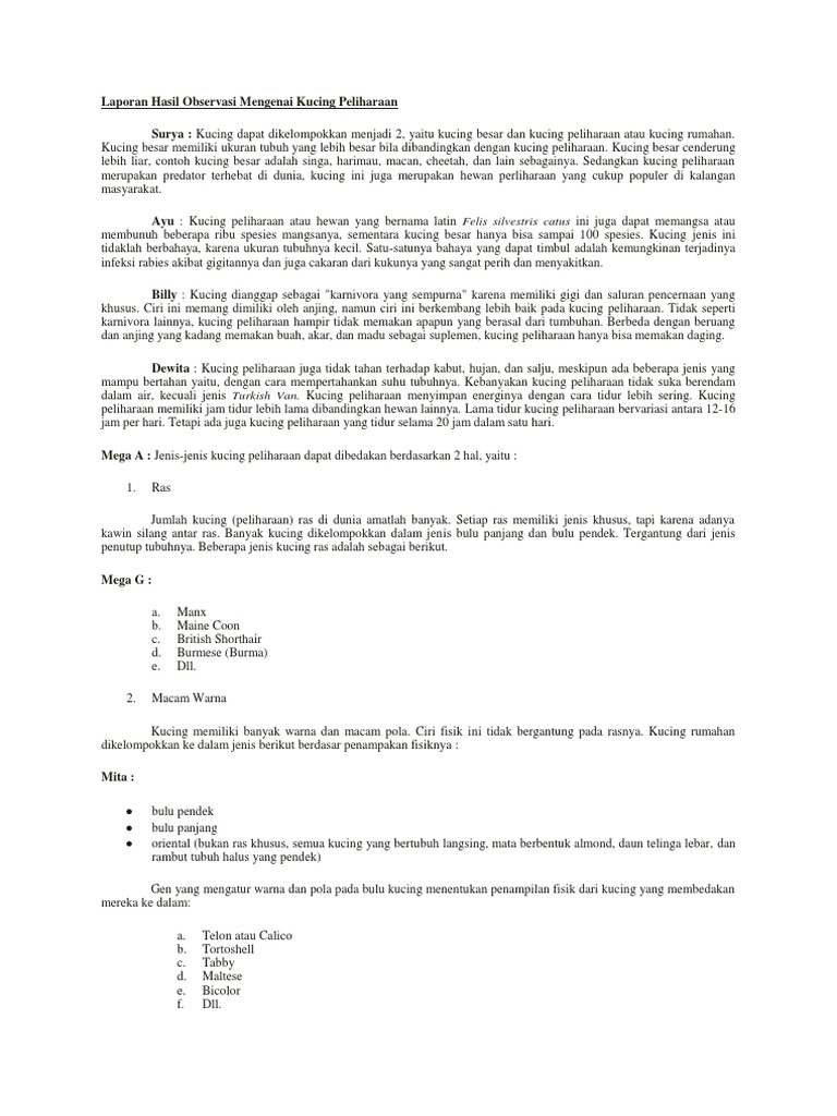 Contoh Teks Laporan Hasil Observasi Tentang Kucing - Kumpulan Contoh Laporan