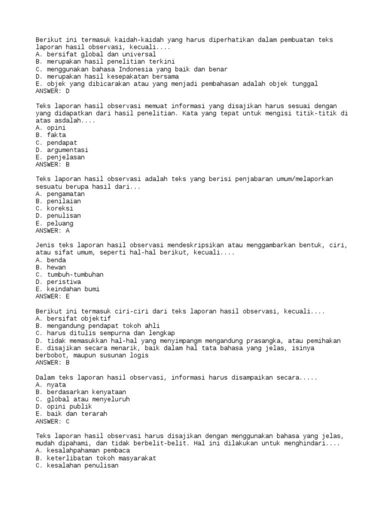 50+ Contoh Soal Pilihan Ganda Teks Laporan Hasil Observasi dan Jawabannya