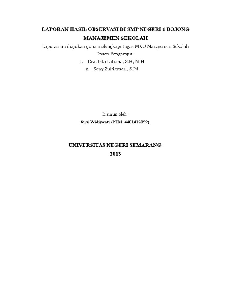 Laporan Hasil Observasi Di Smp Negeri 1 Bojong
