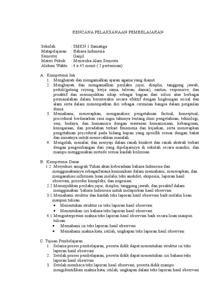Rpp sma bahasa indonesia kelas 10 se 1 tema gemar meneroka alam semesta - [DOCX Document]