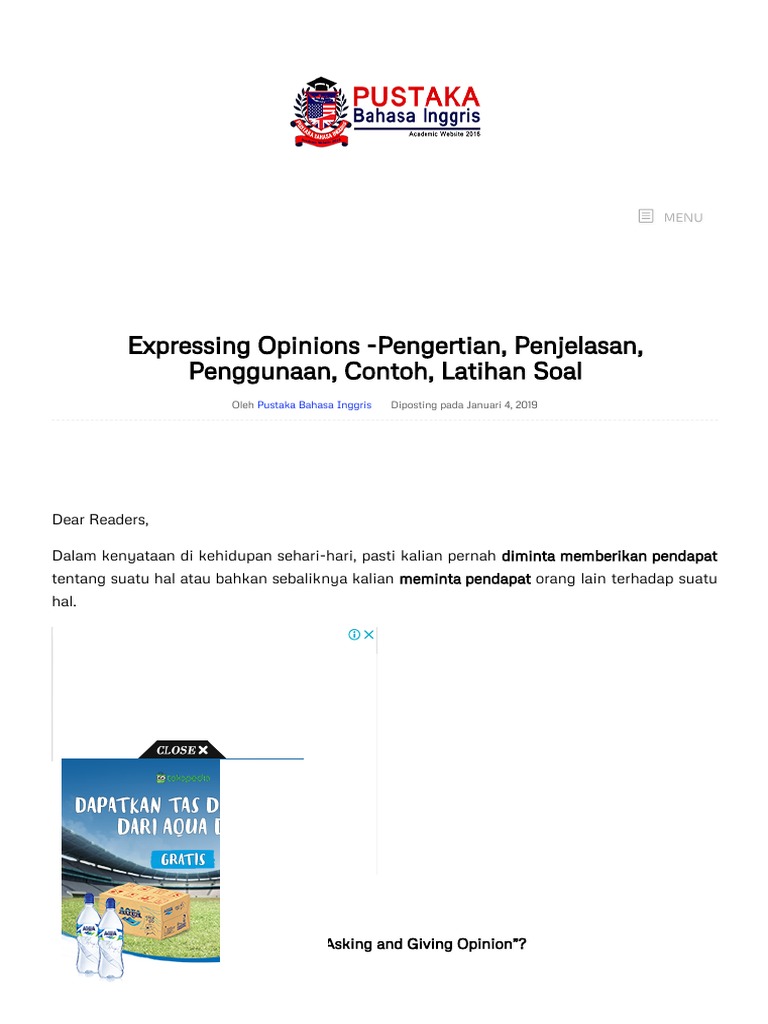 Expressing Opinions -Pengertian, Penjelasan, Penggunaan, Contoh, Latihan Soal | Pustaka Bahasa Inggris.pdf
