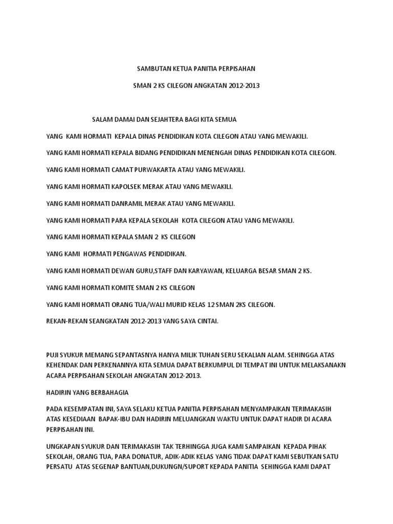 KATA SAMBUTAN KETUA PANITIA ACARA PERPISAHAN SEKOLAH - Kata sambutan