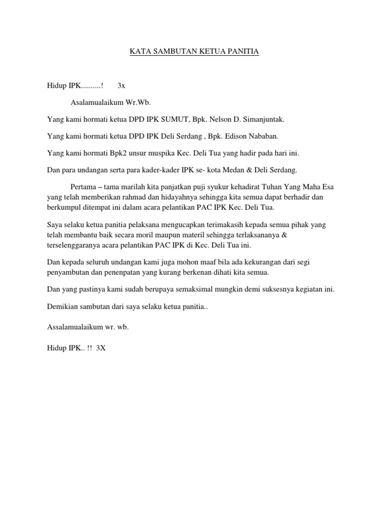 Contoh Kata Sambutan Ketua pelaksana Lengkap / Terbaru 2019
