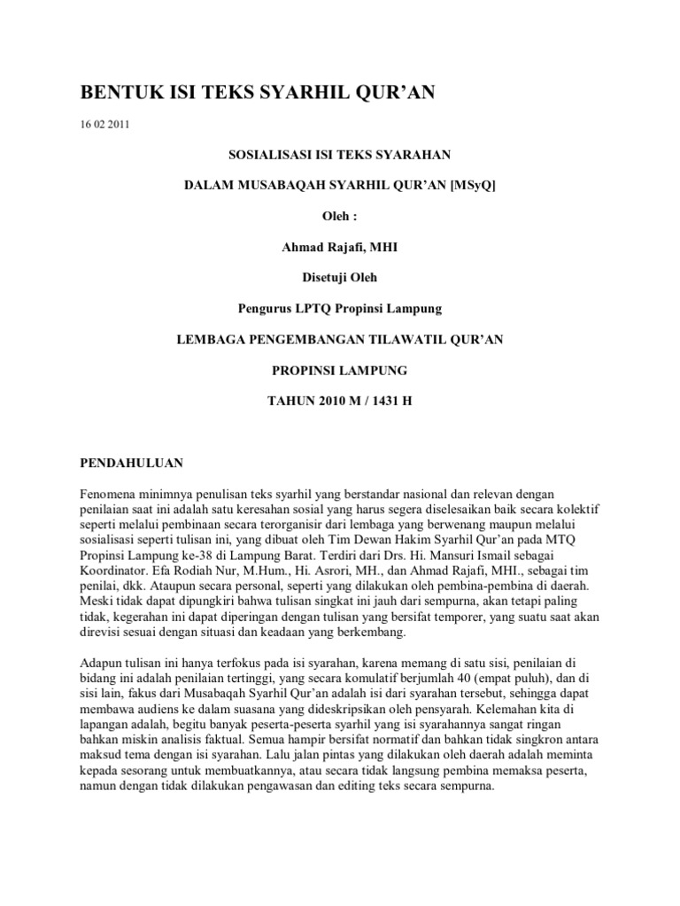 Download Teks Syarhil Quran Terbaru| Teks Nasional| MTQ Nasional | CERITA BUMI