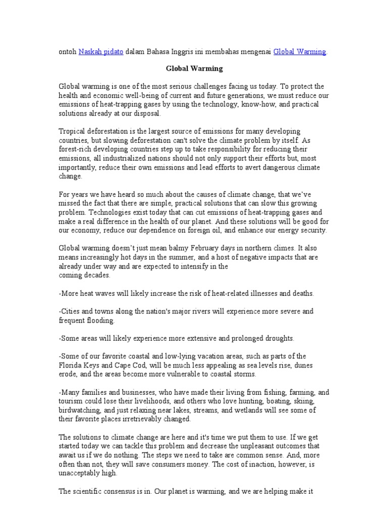 Kumpulan Teks Pidato Bahasa Inggris | Global Warming | Facebook