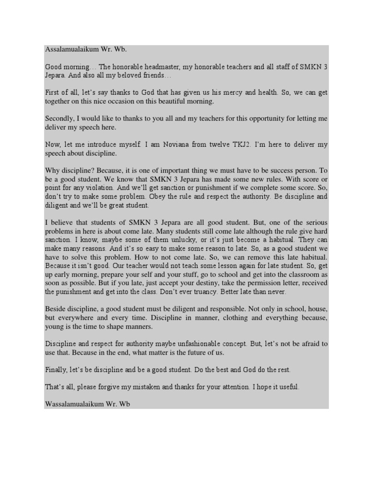 DOC) Contoh Naskah Pidato Bahasa Inggris Singkat | Sulistiyo Ardie - Academia.edu