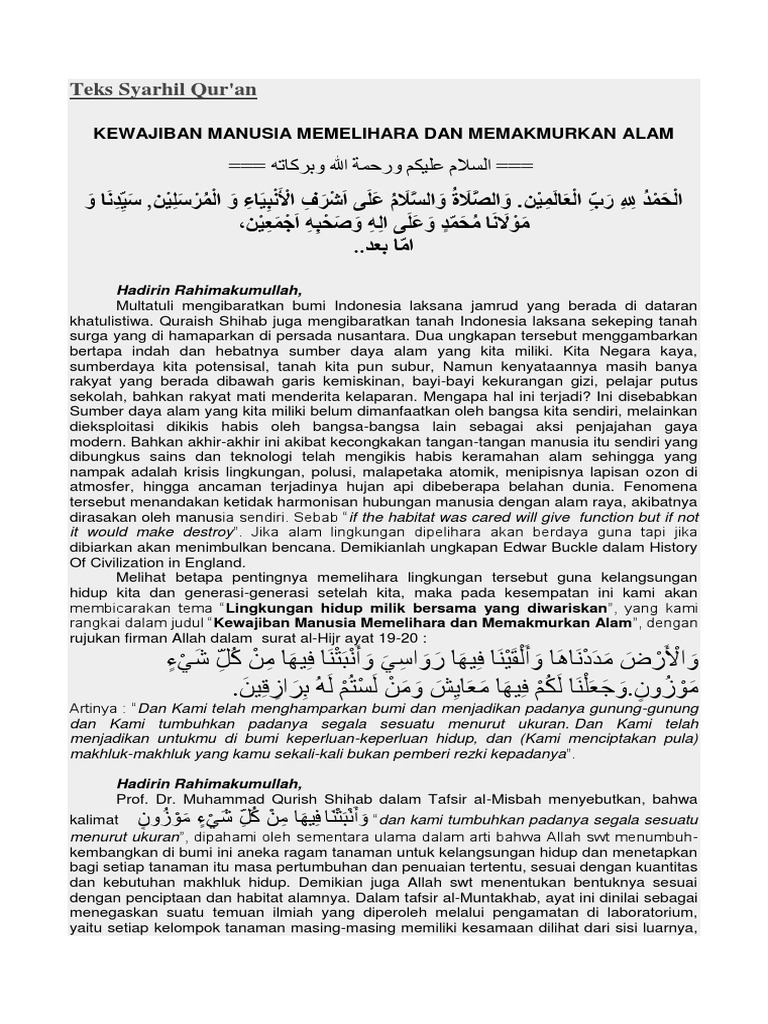 Kewajiban Manusia Memelihara Dan Memakmurkan Alam Syarhil