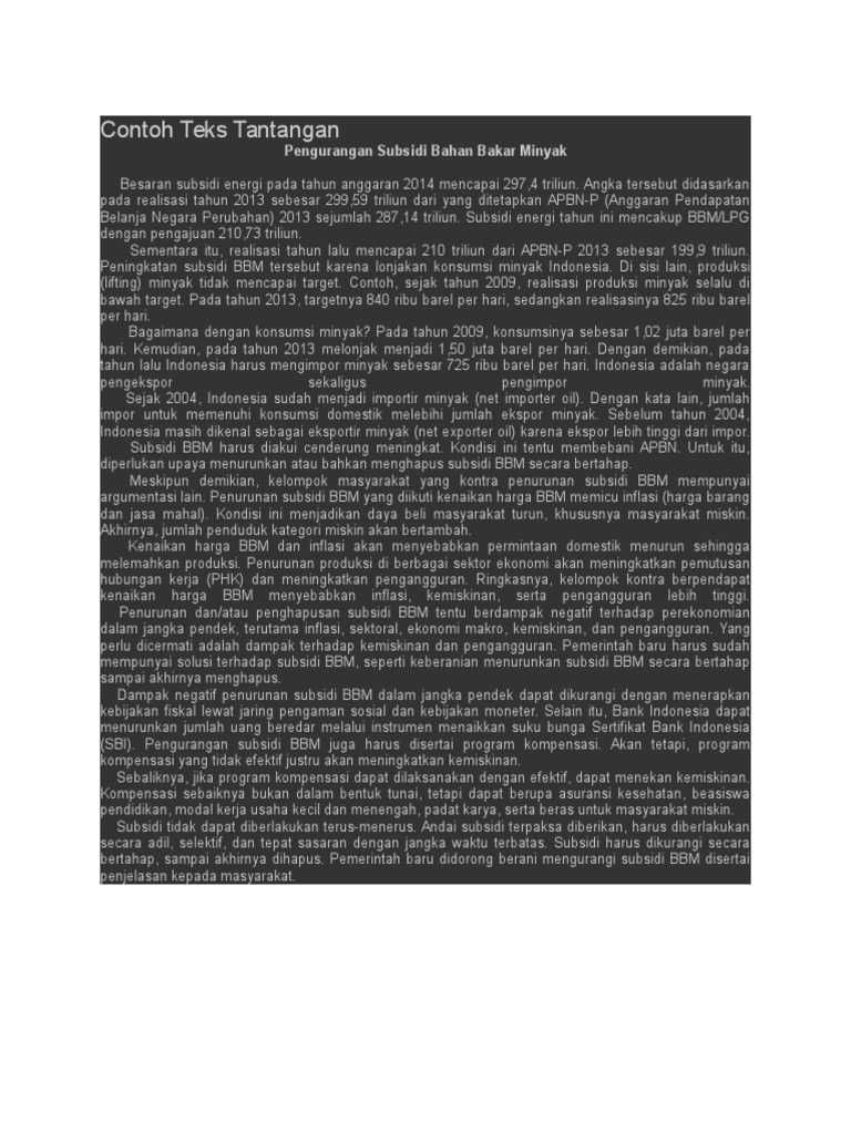 Struktur Teks Pengurangan Subsidi Bahan Bakar Minyak