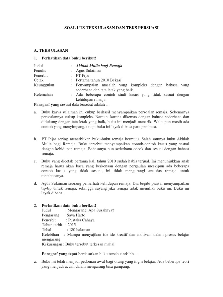 Soal Uts Teks Ulasan Dan Teks Persuasi Kelas VIII SMP
