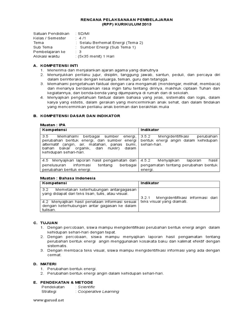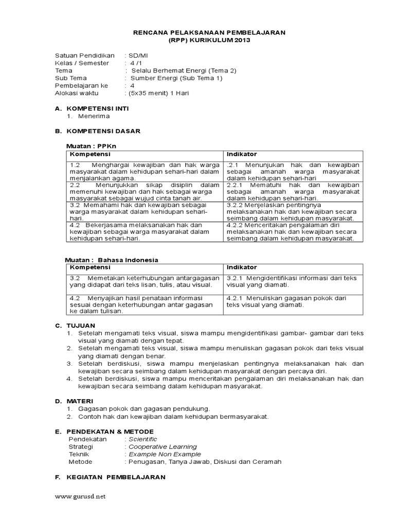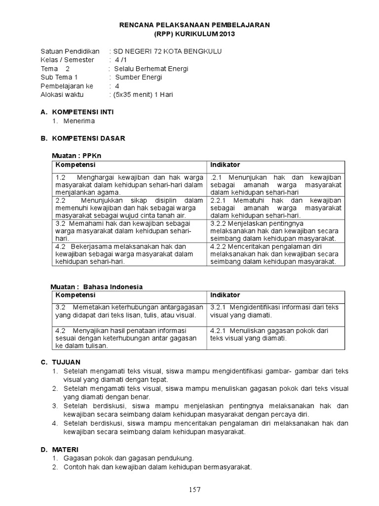 Rencana Pelaksanaan Pembelajaran (Rpp) Kurikulum 2013