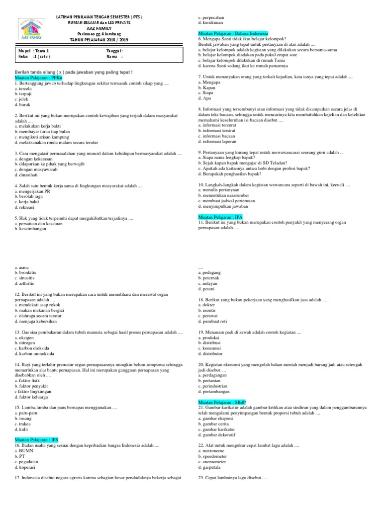 PDF) Soal PTS (UTS) Tema 2 Kelas 5 Kulrikulum 2013 Terbaru | Firman Albugisy - Academia.edu