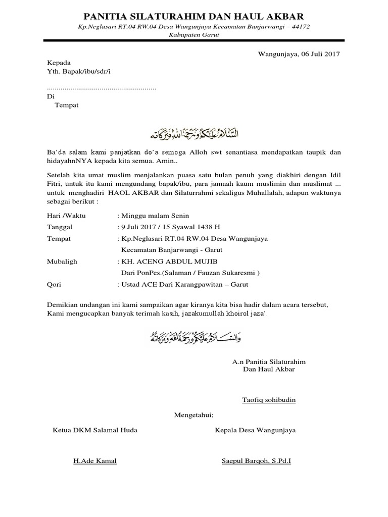 Contoh Surat Undangan Haul 1 Tahun - Kumpulan Surat Penting