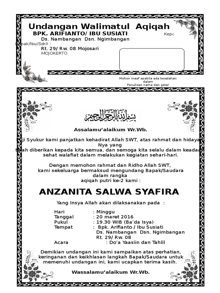 Contoh Surat Aqiqah - Guru Ilmu Sosial
