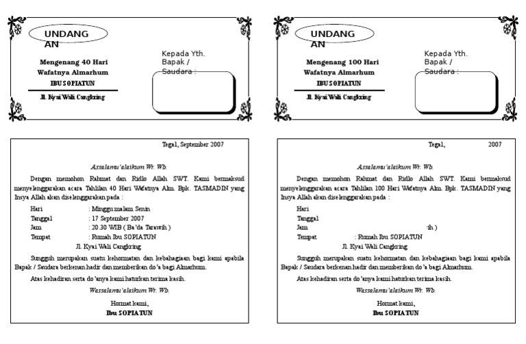 Surat Undangan Tahlil Tahlil 40, 100, 1000 Hari (Hail) F4 Dibagi 2 | Undangan, Pendidikan, Contoh undangan pernikahan