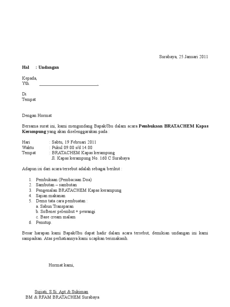 Contoh Surat Undangan Grand Opening Perusahaan - Sample Surat Undangan
