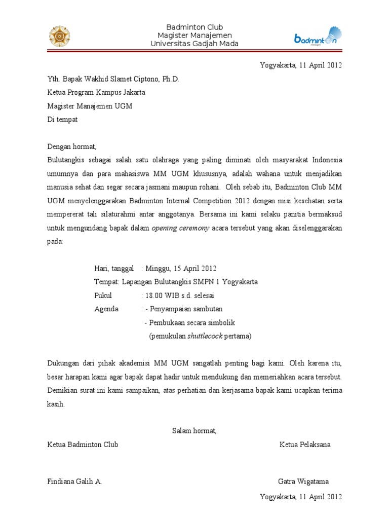 Contoh Surat Undangan opening ceremony