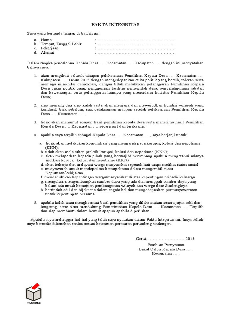 Surat Pernyataan Calon Kepala Desa