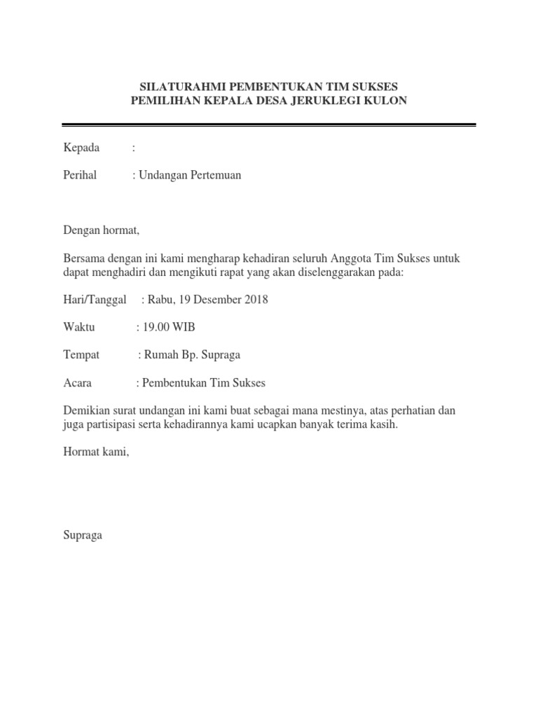 Contoh Surat Undangan Rapat Pembentukan Panitia Pilkades - Bagikan Contoh