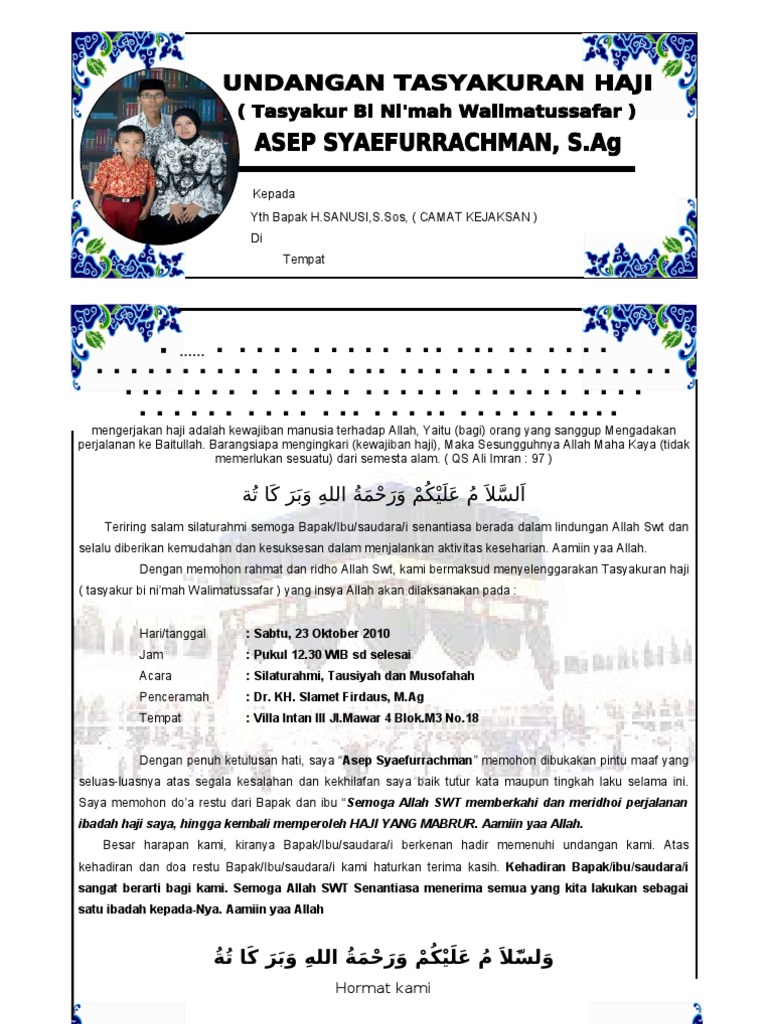Contoh Undangan Syukuran Keberangkatan Haji - PDF Free Download