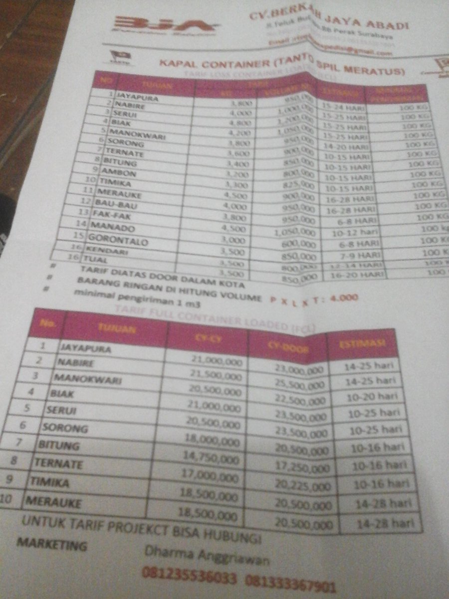 CV.BERKAH JAYA ABADI on Twitter: “Berkah ramadhann,,yuk merapat yg pnya brang tjuan Jayapura terakhir pngiriman brang hr snin,hub WA 082244824756… "