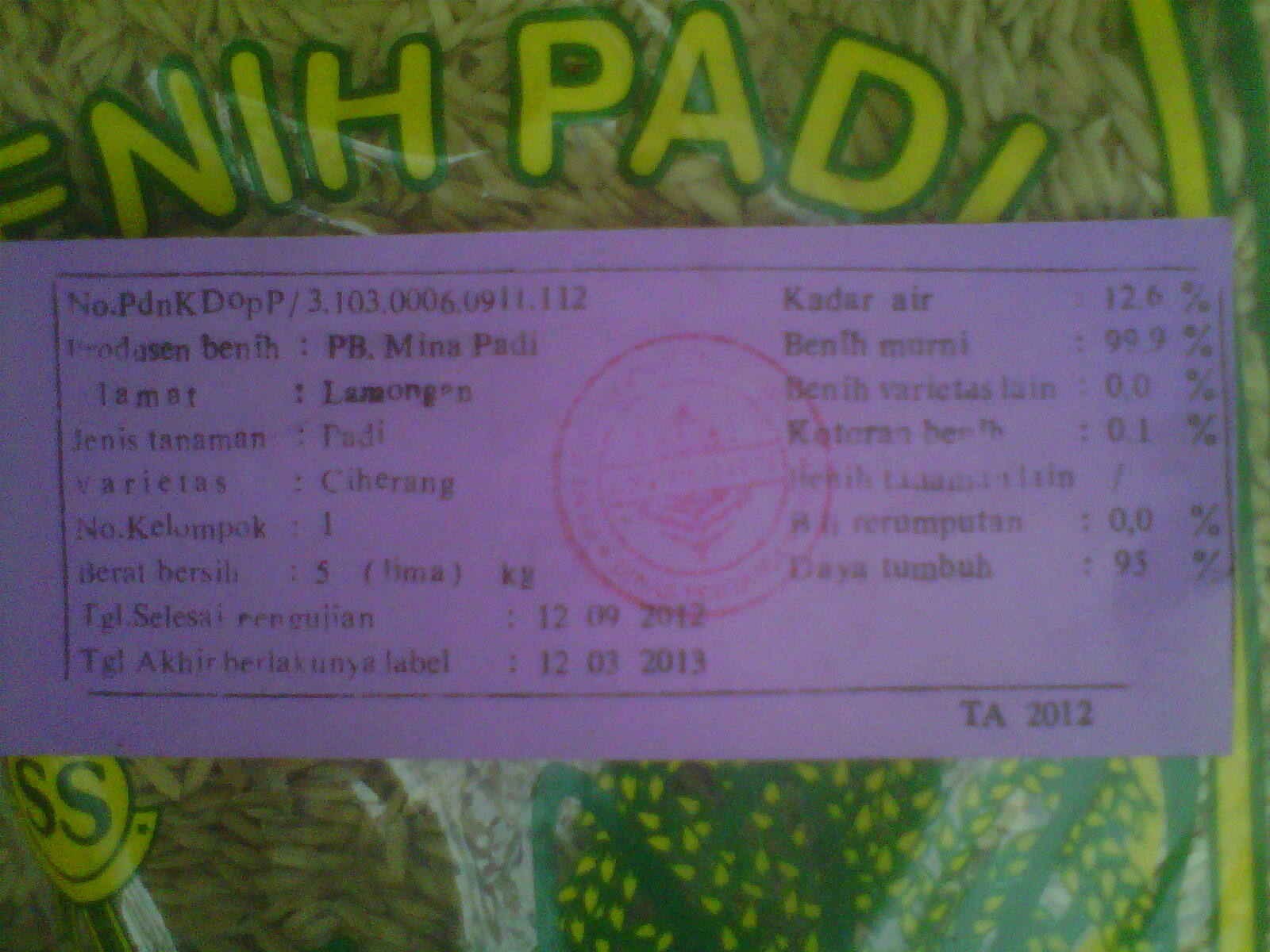 ilmu pengetahuan 5: Sertifikasi Benih Padi