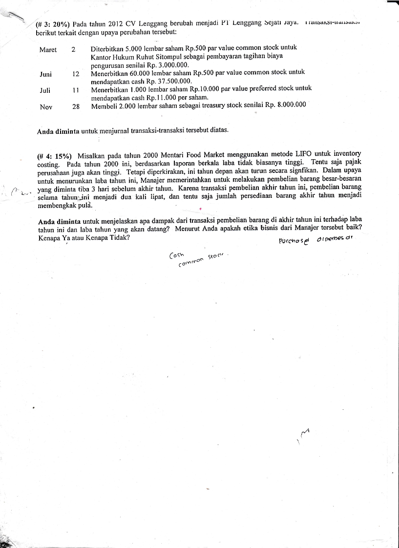 Soal-soal Akuntansi Unand: Pengantar Akuntansi II (Prof.Dr. Eddy R Rasyid, MCom(Hons), Akt) UAS Semester Genap 2014