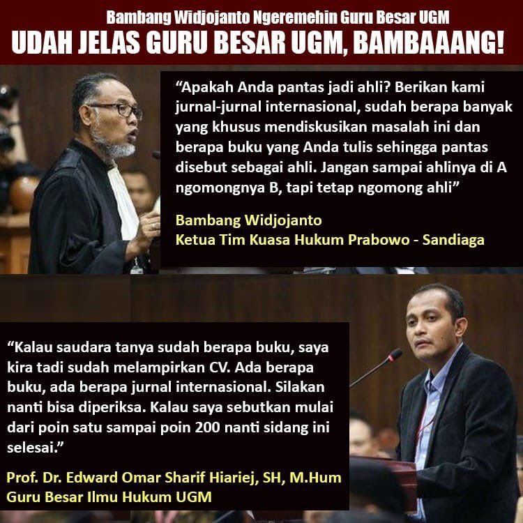 Dumdum on Twitter: “Angkat topi buat prof. Edward Omar Niat Bambang Widjayanto Ketua Tim Kuasa Hukum BPN ingin meremehkan keilmuan prof Edward Omar, eh malah doi ketampar kanan kiri. Noted: Jangan suka