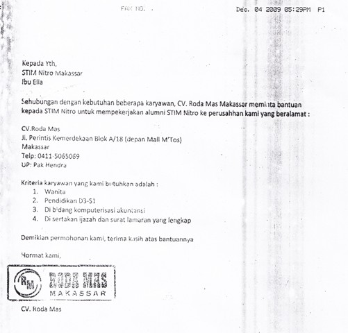 IBK Nitro MKS on Twitter: “CV.Roda Mas MKS butuh pegawai alumni dari STIM Nitro lulusan D3/S1. Info lengkapnya silahkan dibuka gambar terlampir. http://t.co/5d0srcx5”
