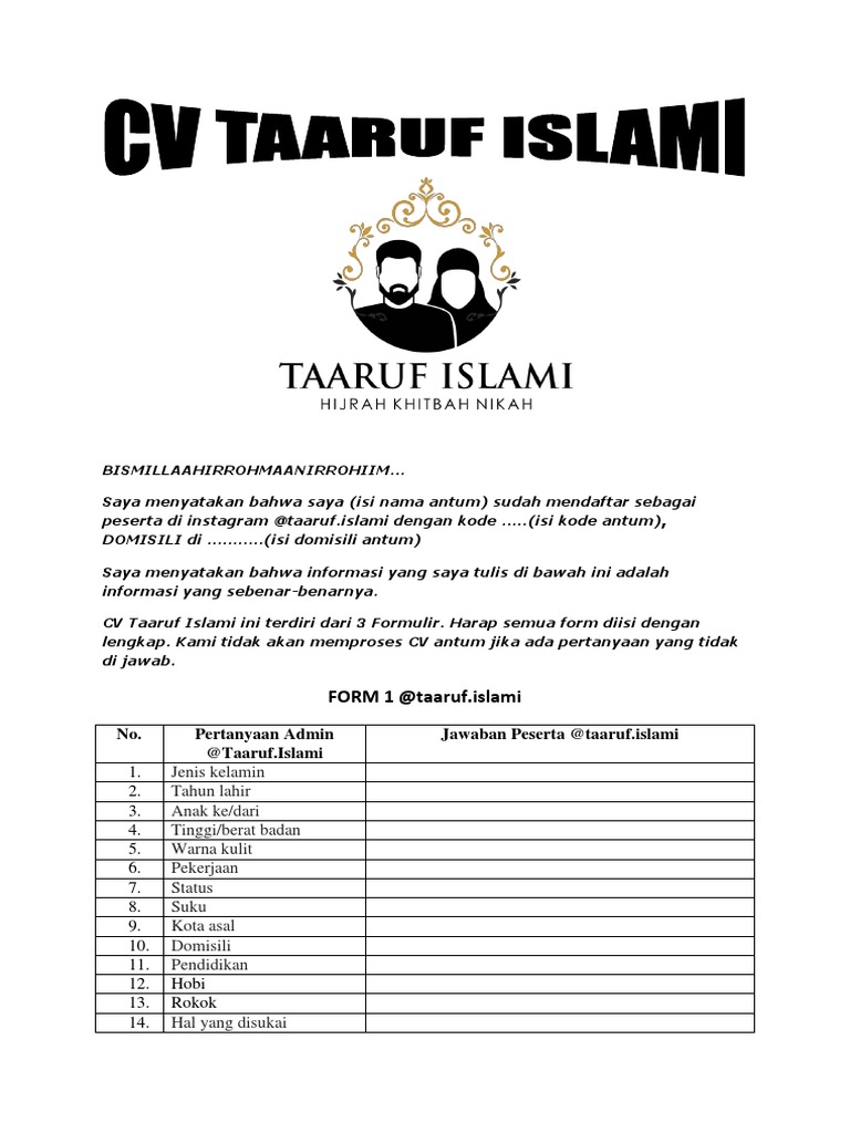 DOC) Format Biodata Taaruf | Sofyan Nur Hardiansyah - Academia.edu