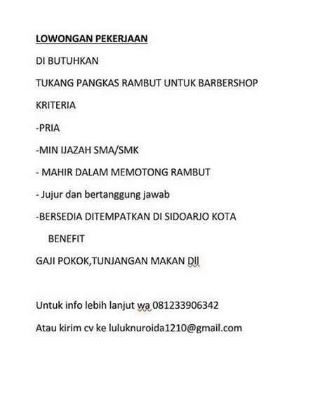 Lowongan Pekerjaan Tukang Pangkas Rambut Gresik | Februari 2019 | SimpananKU - Berita Terupdate Hari Ini