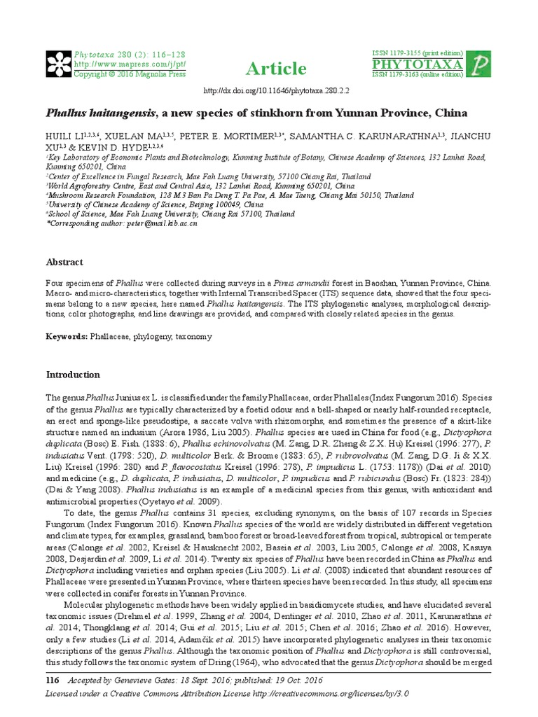 2014_Huili Et Al - Phallus Haitangensis, A New Species of Stinkhorn From Yunnan Province, China | Polymerase Chain Reaction | Earth & Life Sciences