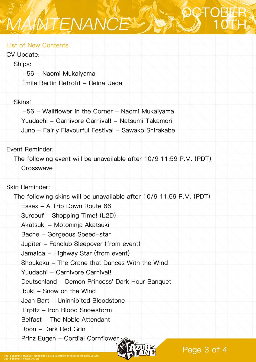 Azur Lane Official on Twitter: “Here’s an advance notification for the coming maintenance period. Please plan accordingly for the scheduled server downtime. For any questions, contact us: al.cs@yo-star.com #AzurLane #Yostar… https://t.co/5o4GPZbFAa”