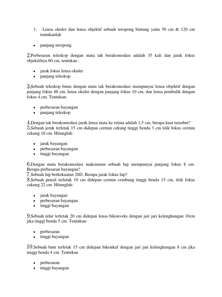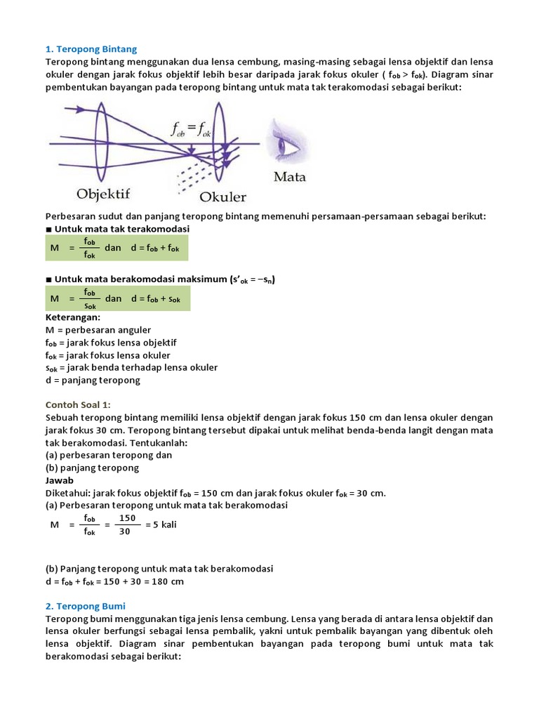hauslaparkurangren . Web viewTropong astronomi memiliki lensa obyektif dengan jarak titik api 100 cm dan okuler dengan jarak titik apinya 2 cm. Perbesaran … 03/26/2015 01:30:00 - [DOCX Document]