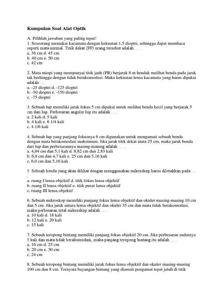 Soal dan pembahasan alat Optik (Soal) | Usaha321.net