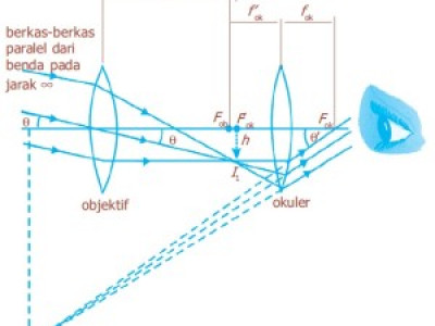 Lintasan berkas sinar ketika melalui sistem optik teropong bintang ditunjukkan seperti gambar berikut. - Mas Dayat