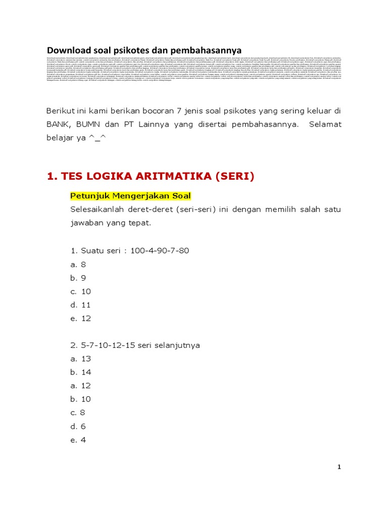 Download Soal Psikotes Dan Jawabannya Pdf | Peatix