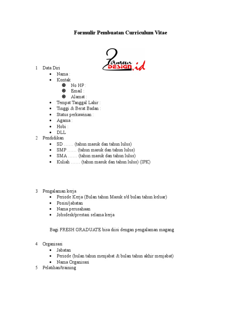 Form Cv Formulir Pendaftaran Peserta - Edit