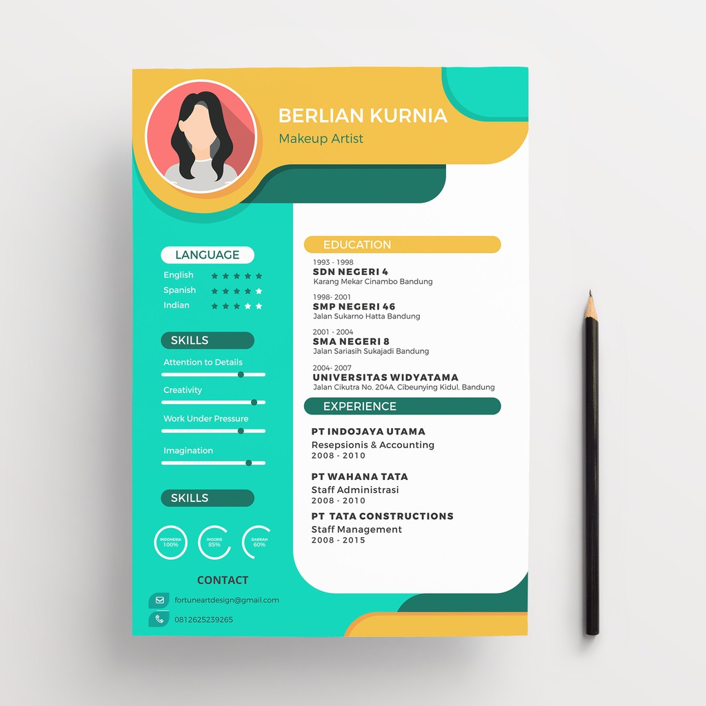 20 Contoh CV Lamaran Kerja yang Menarik & Kreatif (Cara Membuat CV) | Creative cv template, Cv kreatif, Riwayat hidup