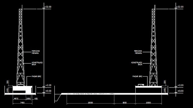 Desain Menara Base Transceiver Station (BTS) Tinggi 32 Meter.dwg - KotakCAD