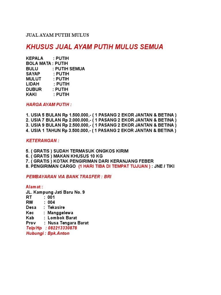 ayam jawa putih mulus tembus di Lapak Naja Muzaki | Bukalapak