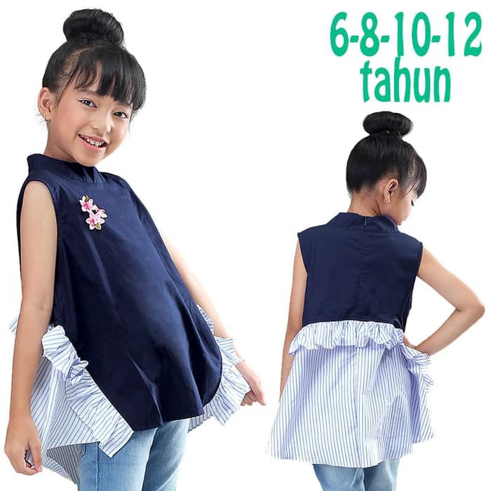 Chubby Grosir Baju Atasan Anak Perempuan Import Blouse Slus Cewek VB733 Katun Biru Navy Original | Shopee Indonesia