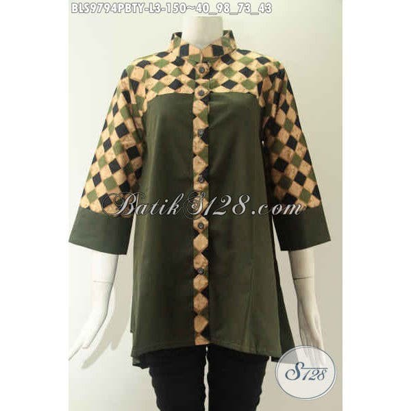 blouse batik kerja wanita desain trendy kombinasi kain polos toyobo. model tanpa krah lengan tujuh per delapan resleting depan size xxl bls 9564 pbty - Kemeja, Blouse » Fashion Wanita - Bukalapak.com | inkuiri.com