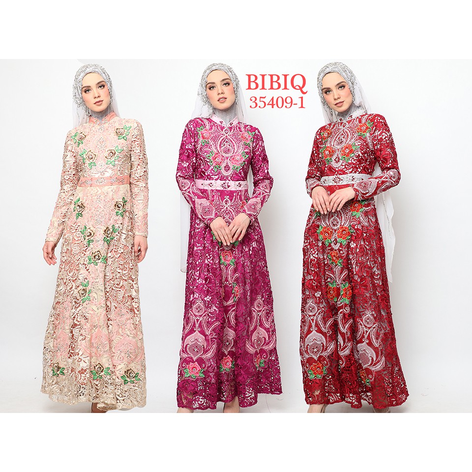 Gamis Pesta Baju Muslim Mewah BIBIQ Terbaru Bahan Brokat 35409-1 | Shopee Indonesia