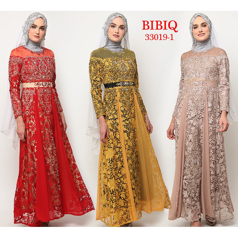 Gamis Pesta Baju Muslim Mewah BIBIQ Terbaru Bahan Brokat Sifone 33019-1 | Shopee Indonesia